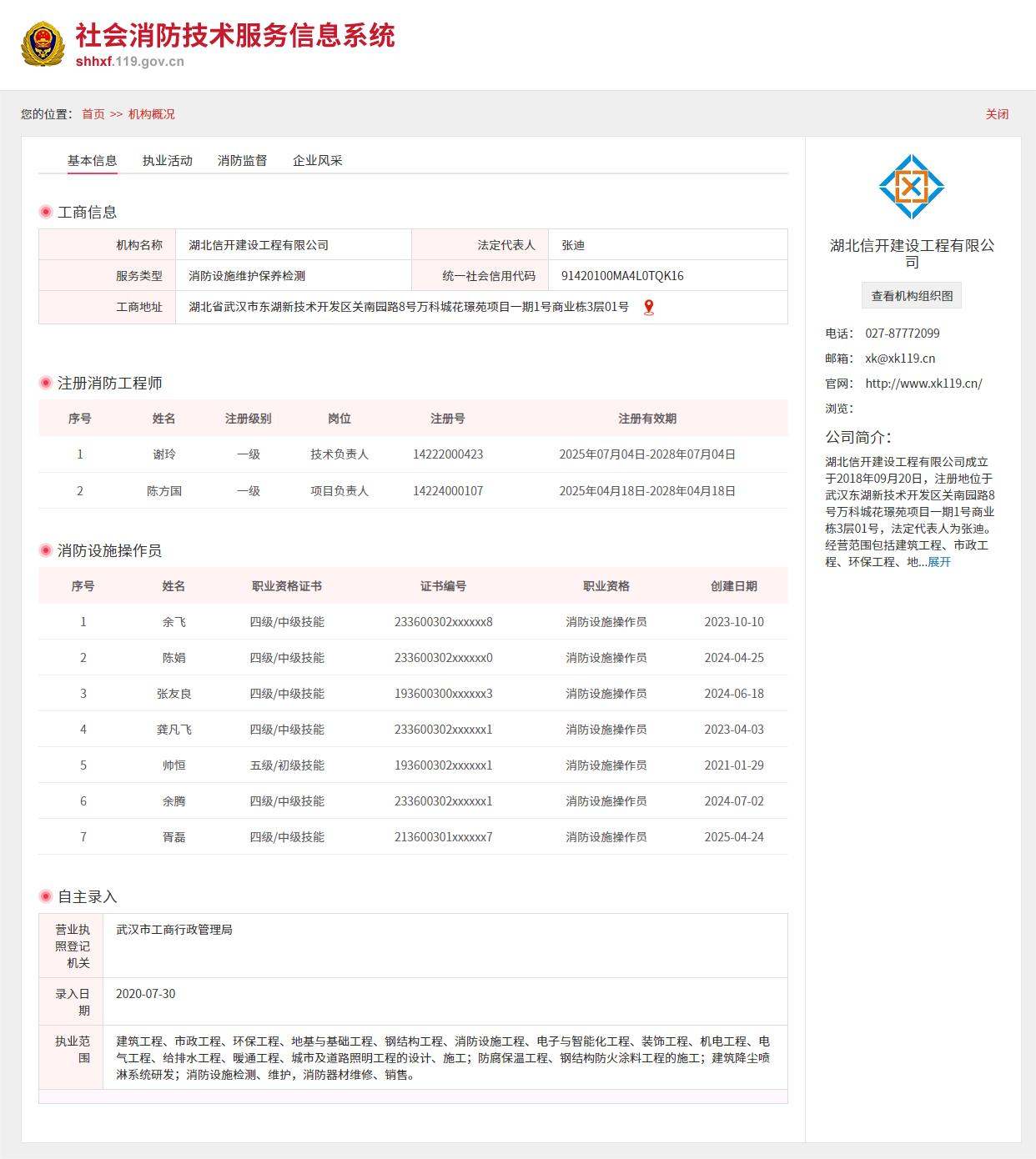信开建设消防维保检测/评估资质