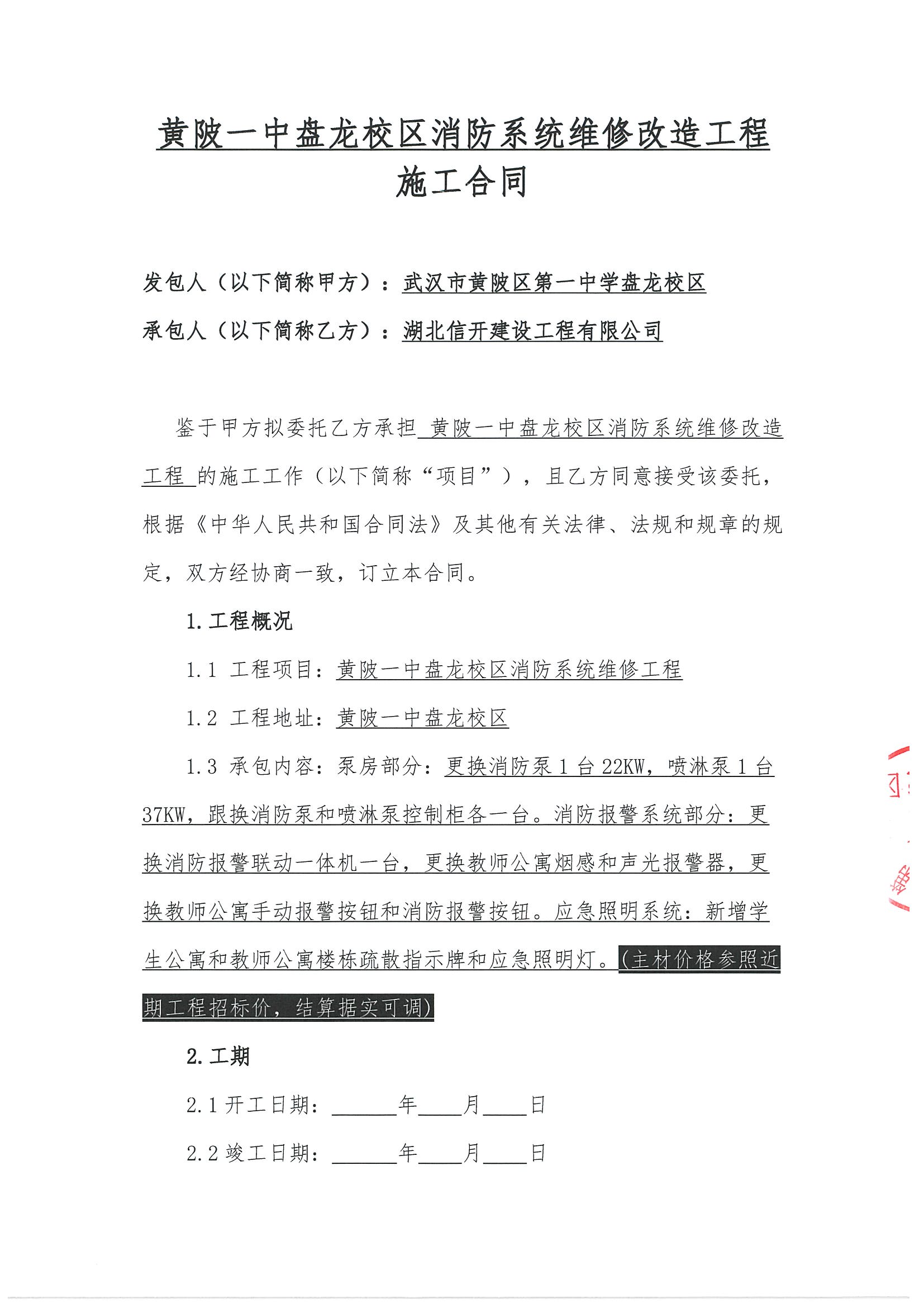 黄陂一中盘龙校消防系统维修改造工程