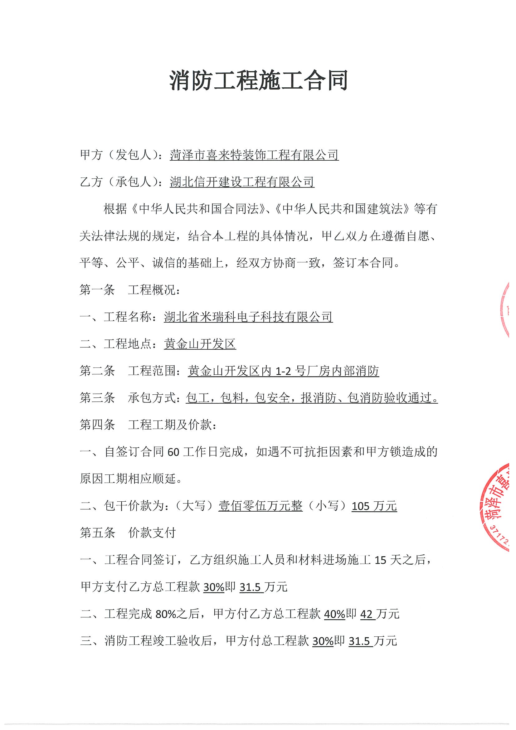 黄金山开发区内1-2号厂房内部消防